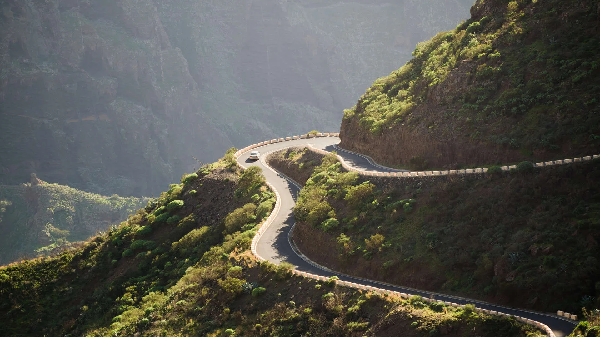 De wegen kunnen behoorlijk kronkelen en vooral in de bergen is het aan te raden niet al te hard te rijden. Op La Palma kom je soms grotten tegen waar maar 1 auto tegelijk doorheen kan. Even toeteren dus!