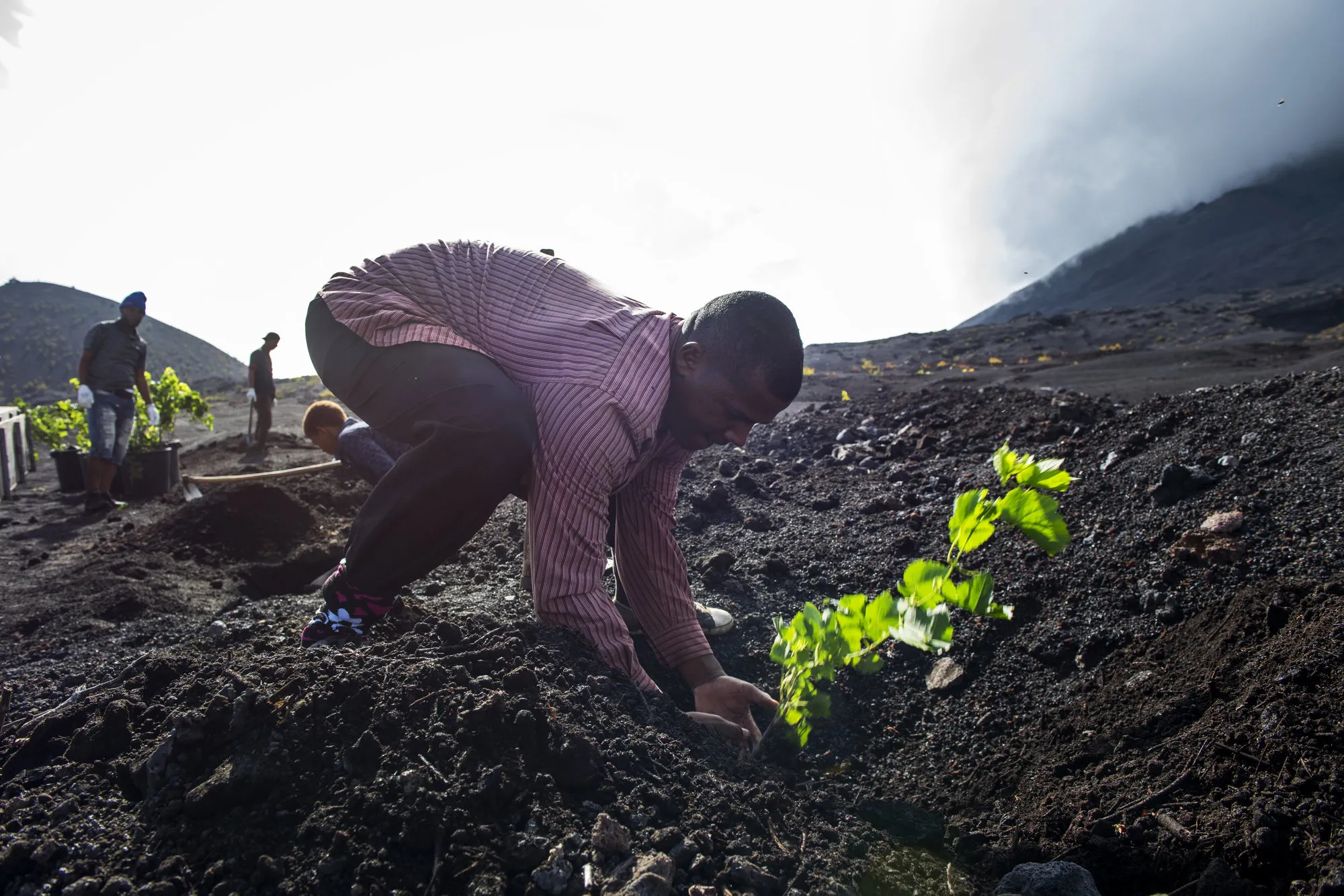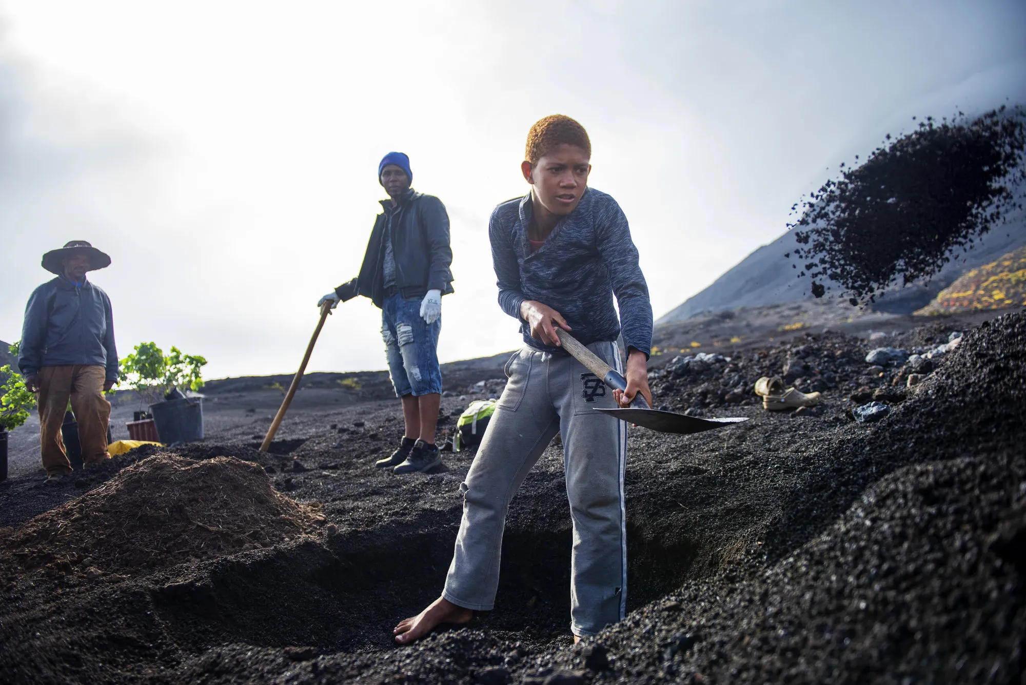 Het felgroene blad van de koffie- en wijnplantages steekt prachtig af tegen het zwartgrijze landschap. Hoewel de bloeiende wijn- en koffieteelt anders doen vermoeden, is de vulkanische grond van de vulkaan Kaapverdië niet vruchtbaar. Direct na een uitbarsting is de lava mineraalarm en hard; het duurt jaren tot decennia voordat natuurlijke processen de bodem vruchtbaar maken. Om toch te kunnen zaaien en oogsten, verrijken boeren de grond plaatselijk met compost en varkensmest.
