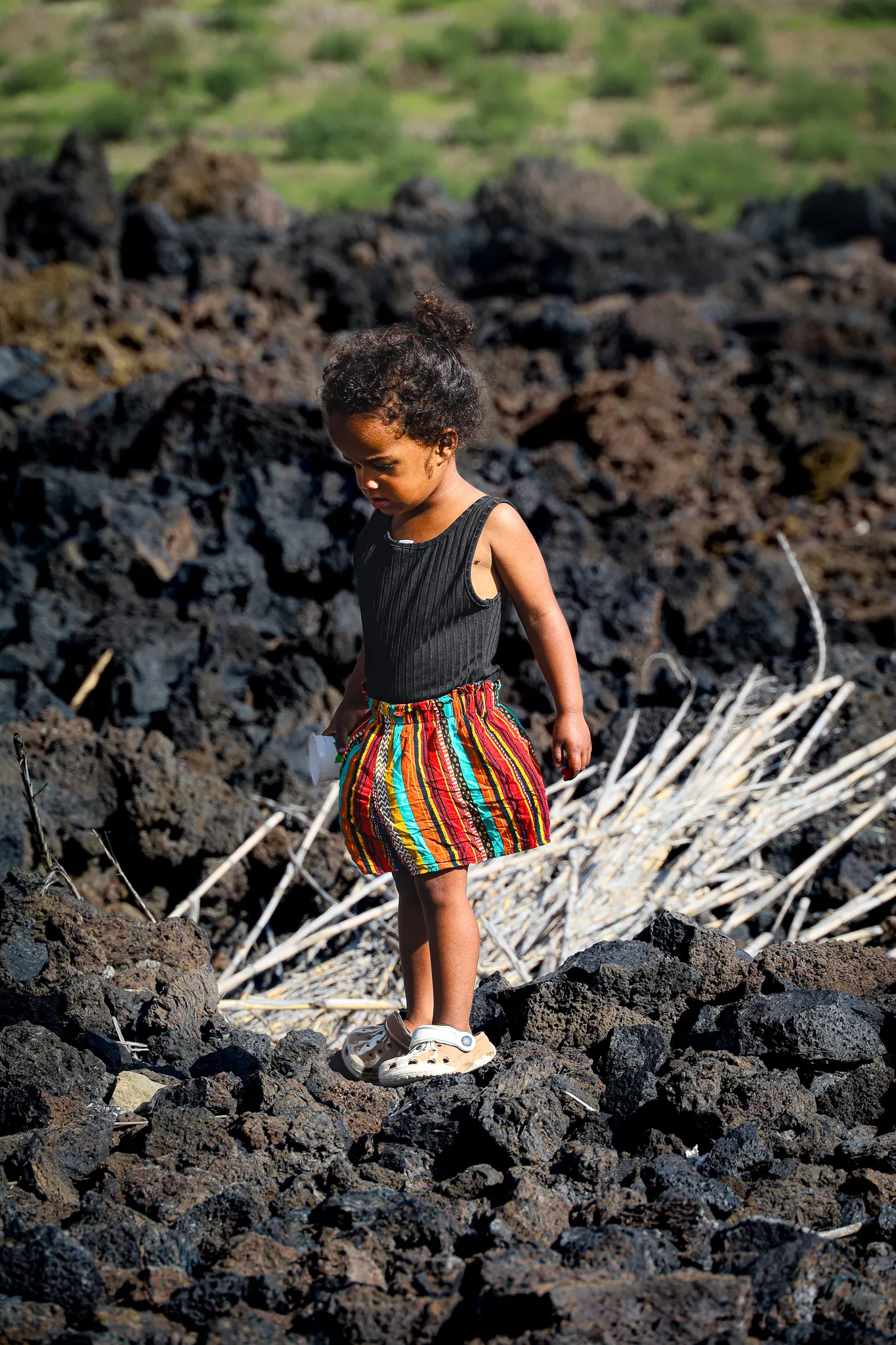 Middenin de krater van de ‘voormalige’ Pico do Fogo ligt het dorp Chã das Caldeiras. Vanaf São Filipe rijd je er in ongeveer een uur naartoe. De route slingert door valleien met groene velden met bananenbomen, oranje bloeiende albizia’s en roze oleanders. Af en toe zie je koeien of een stel geiten scharrelen in het bergachtige landschap. Bij plukjes huizen bekijken locals op plastic stoelen het langsrijdende verkeer, kinderen lopen met armen vol mango’s in de berm of slingeren vrolijk spelend om verkeersborden – houd daar rekening mee tijdens het rijden, tranquilo.