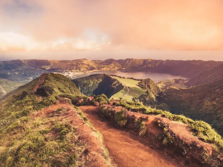 Sao Miguel is het grootste en drukst bevolkte eiland van de Azoren. Dankzij de glooiende heuvels, de bloemrijke hellingen en de landbouw wordt Sao Miguel ook wel het ‘groene eiland’ genoemd. Die kleur komt terug in de meest bekende bezienswaardigheid op het eiland. De kratermeren van Sete Cidades hebben namelijk twee verschillende kleuren; de een is azuurblauw, de ander is grasgroen. Een smalle landbrug deelt de meren in tweeën. Wandel er op je gemak rond, geniet van het uitzicht vanaf de uitkijkpunten Miradouro da Boca Inferno of Miradouro da Vista do Rei en ga daarna kanoën over de meren.