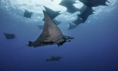De wateren rondom de azoren zijn erg voedselrijk. Vele onderwater dieren komen dan ook naar de eilanden toe om zich te goed te doen aan de verschillende voedselbronnen. Het kan dus best druk zijn onderwater en je vindt er verschillende dolfijnsoorten, blauwe haaien, mako haaien, bultrugwalvissen en de manta’s. Een ontmoeting met een manta is erg zeldzaam omdat alleen rond de evenaar in tropische en subtropische oceanen voorkomen. Daarnaast zijn ze alleen in de zomermaanden van juni tot en met september rondom de eilanden te vinden. Bij Santa Maria heb je de grootste kans op een ontmoeting met deze gracieuze wezens