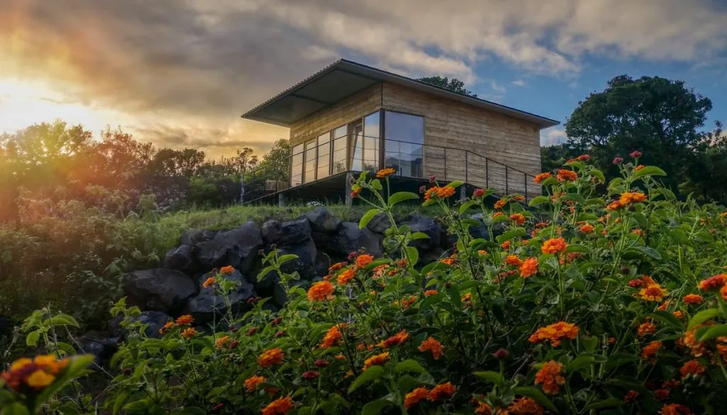 De bungalows zijn als het ware mini-appartementen die genesteld zijn in de bergrug van Sao Jorge. Ze zijn ook nog eens ecologisch verantwoord. Want je slaapt in een accommodatie die gemaakt is van lokale en natuurvriendelijke materialen zoals zeeden- en cederhout. Zodra je de bungalow binnenstapt ruik je de geur van hout en begint het ontspannen gelijk.