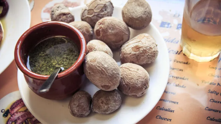 - Misschien is het je al opgevallen tijdens je vakantie op La Gomera, maar diep in de valleien groeit de kern van het recept ‘papas arrugadas’. De lokale bevolking verbouwt hier aardappelen die vervolgens in het zoute zeewater worden gekookt tot ze gerimpeld en zoutig zijn. Je proeft dit typische gerecht in de vele tapas restaurants die je op het eiland vindt. Ze worden vaak geserveerd met een pittige saus van knoflook, olijfolie, azijn en kruiden.