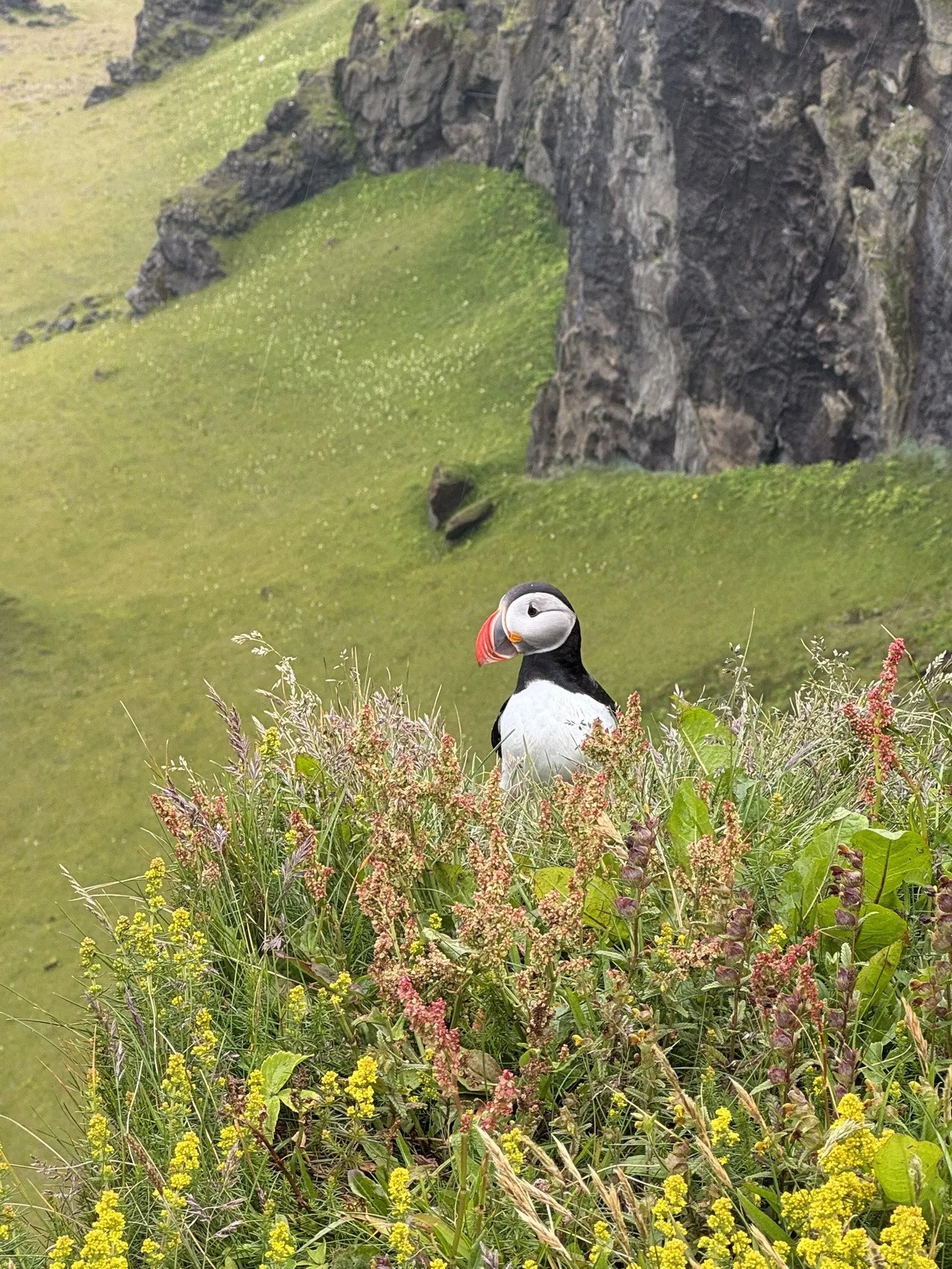 IJsland is een goede plek om bijzondere dieren te zien. Langs de kusten zie je vaak zeevogels, waaronder de papegaaiduiker. Deze kleurrijke vogel komt vooral in de zomer massaal voor en nestelt in de kliffen langs de kust. Hun felgekleurde snavel en onbeholpen manier van vliegen maken het leuk om te zien.