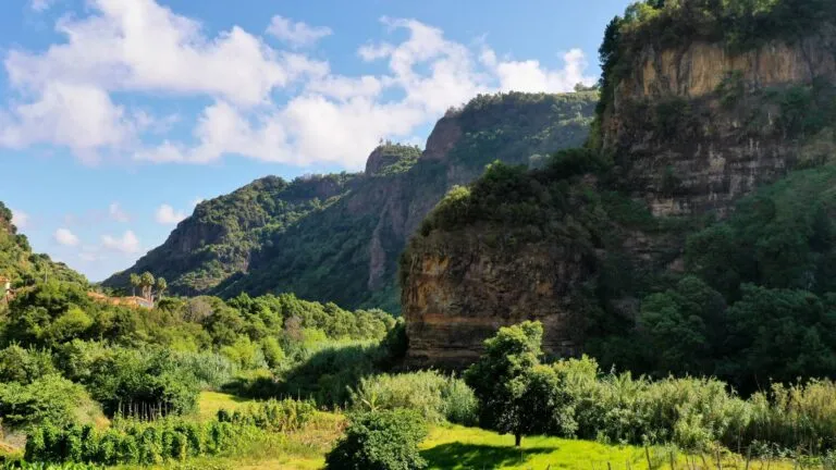 Sao Vicente: een dorpje met een bijzondere ligging in een groen dal in het noorden van Madeira. Vanaf Funchal voert de kortste route dwars door de bergen en doe je er 40 minuten over. Maar de kustroute is pas echt een van de mooiste Madeira bezienswaardigheden. Aan je ene hand zie je de oneindige blauwe oceaan. Aan de andere groene plateau’s met zo nu en dan een aantal huizen.
