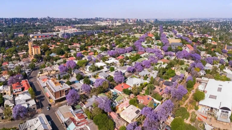 Hoewel Pretoria, Kaapstad en Bloemfontein de hoofdsteden van Zuid-Afrika zijn, is Johannesburg de grootste stad. De stad staat bekend om haar rijke mijnbouwgeschiedenis en de gekleurde Jacaranda bomen. Bovendien is het een ideale plek voor een overstap. Vanuit Nederland vlieg je namelijk met een rechtstreekse vlucht naar Johannesburg en vanuit daar start je gemakkelijk jouw Zuid-Afrika vakantie.