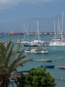 Omdat de zon in Mindelo rond 19.00 – 19.30 uur ondergaat is het leuk om de zonsondergang vanaf een terras te bekijken. Mijn favoriet is de Martini Sunset bar met infinity pool. De gin-tonics hier zijn echt goed. En het uitzicht natuurlijk ook. Waar ik ook graag kom is de drijvende bar in de haven van Mindelo. Door de deining en het uitzicht op de baai is het net alsof je op een boot zit. Super tof!