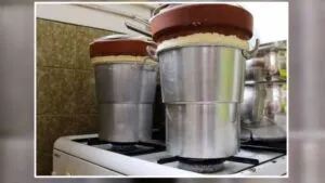 ‘Het is een cake. Een oversized muffin eigenlijk. En die stoom je in een bloempot. Het klinkt makkelijk, maar dat is het niet. Het kost tijd en expertise om een Cuskuz goed te krijgen. Het belangrijkste is om de basis van maismeel, suiker en water goed in de gaten te houden. Dat is de basis volgens het traditionele recept. Chiquinho en ik vinden het leuk om ook te experimenteren met vullingen en kleur. Roze en blauw voor een babyshower bijvoorbeeld. Of chocolade voor zoetekauwen. Als ‘ie klaar is kun je de Cuskuz beleggen met zowel zoet als hartig beleg. Heerlijk!’