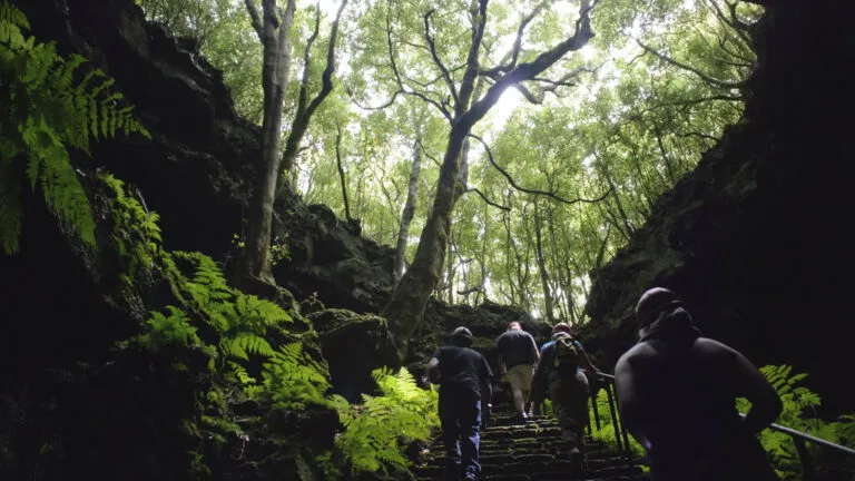 Overdekt betekent niet altijd binnenshuis en een bezoek aan de reusachtige Algar do Carvao levert het bewijs. Een 90 meter lange lavatunnel voert je diep ondergronds waar je droog bent. Maar voor een echt spectaculair uitzicht is een regenjas een must: de regen die tegen het licht langs de met mos en varens beklede ingang van de ingestorte vulkaan valt is een traktatie.