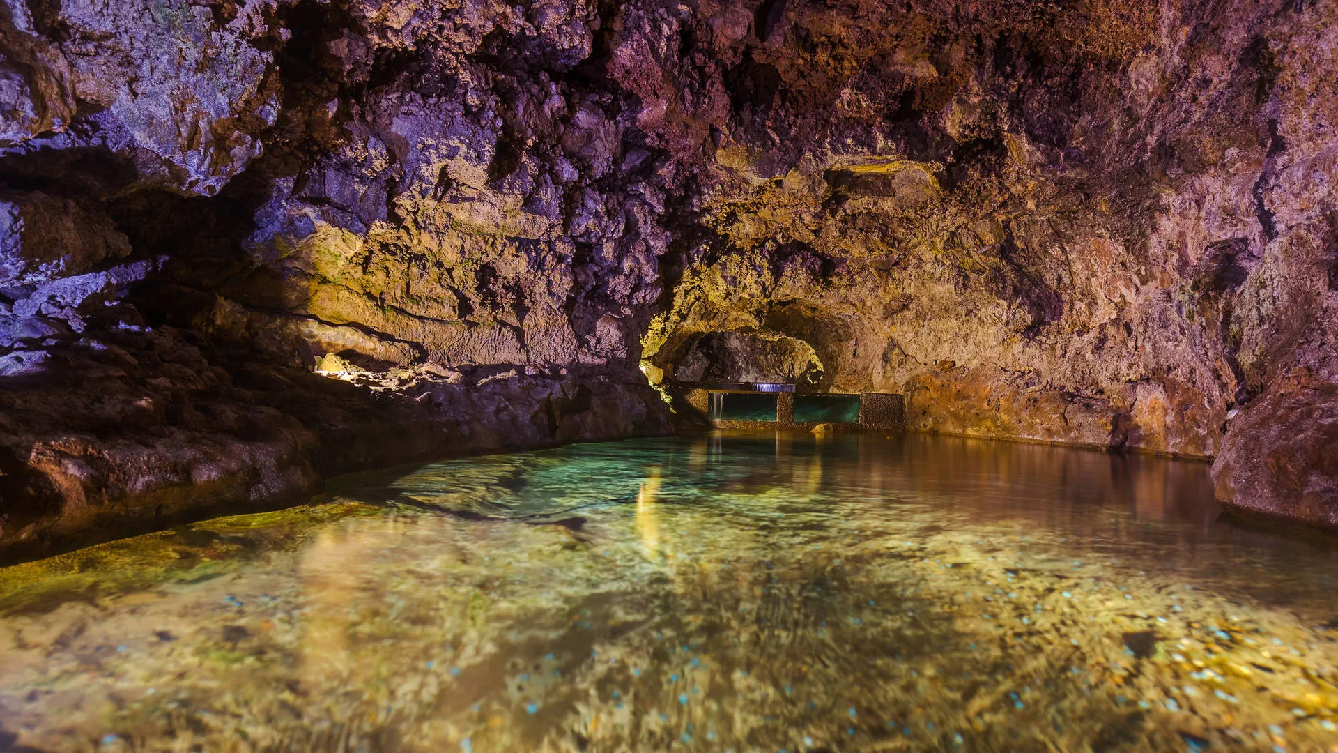 Hoge kamers vol stalagmieten, planten die zich hebben vastgeklampt aan de rotswanden en als absolute hoogtepunt het kristalheldere, ondergrondse meer. De flits hoeft niet aan voor je instagram foto’s, het kunstlicht in de grot benadrukt de blauwe kleur van het water en geeft het een ijzige gloed.