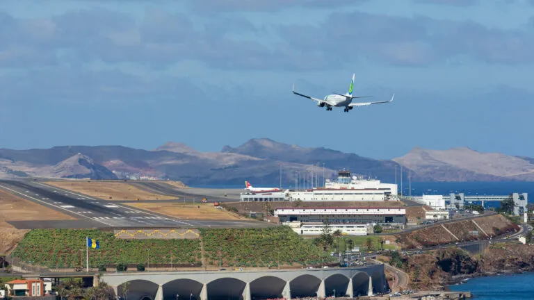 In het vliegtuig voel ik de vlinders fladderen als de daling wordt ingezet. De landing op Madeira airport is volgens veel piloten een van de meest uitdagende in Europa, maar daar is weinig van te merken. Binnen enkele minuten staan we aan de grond en begint de bedrijvigheid: de trap wordt naar het vliegtuig gereden, bagage wordt in karren naar de terminal gebracht en passagiers drommen om de bagagecompartimenten. Olá Madeira, we zijn er!