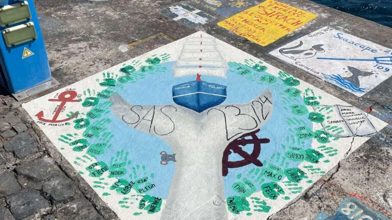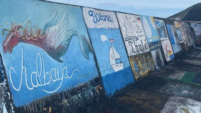 Het eiland stelde opnieuw niet teleur. De haven van Horta, met zijn talloze boten en het geluid van de ruige zee, voelde nog net zo magisch als twee jaar geleden. En natuurlijk waren daar weer de kleurrijke schilderingen op de kade. Voor zeilers is het traditie om hier een eigen kunstwerk achter te laten. En, je raadt het al, als echte zeilersbestemming ligt de kade van Faial daar vol mee.