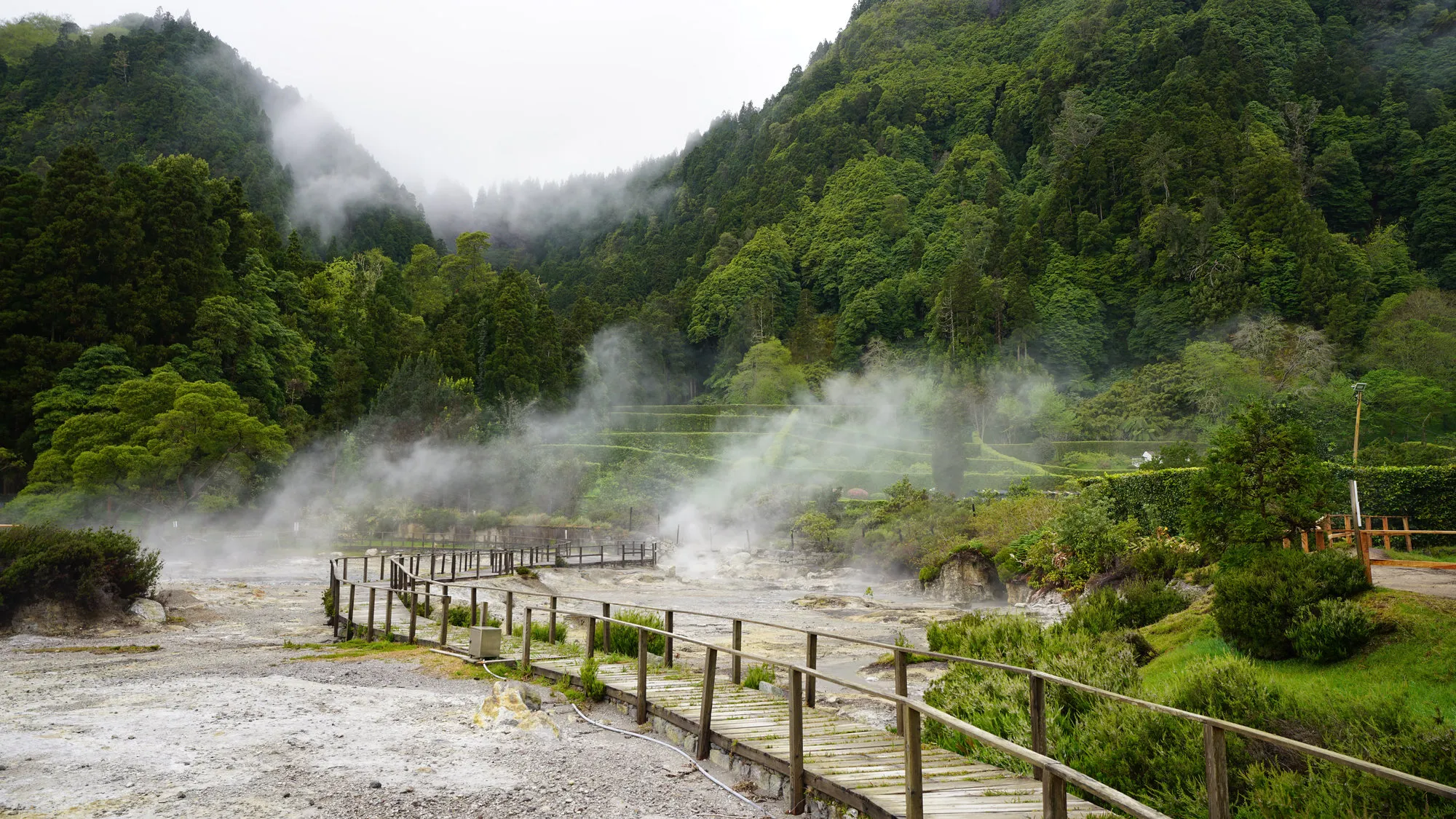 Om acht uur gaat het startschot. Nog 50 kilometer te gaan. Langs de lokale plantages en de Salto do Prego waterval. De route begint weer te stijgen richting Pico da Vara. Het hoogste punt van Sao Miguel biedt panoramische vergezichten over alle kanten van het eiland. In de verte, tussen dampende kraters en aan de rand van Lagoa das Furnas ligt de finishline. Tijd voor een viering. Bem feito, parabéns!