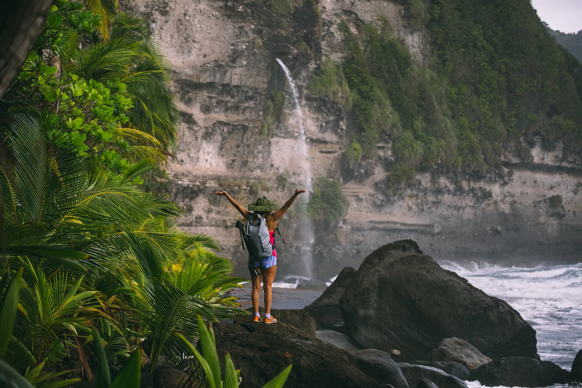 De koffers zijn gepakt en de zonnebrand ligt klaar! Vandaag vertrek je naar Guadeloupe. Na een overstap in Parijs en in totaal zo’n 13 uur vliegen, spot je de eilanden Grande-Terre en Basse-Terre vanuit je vliegtuigraampje. Je reis start op het eiland Basse-Terre, vol diepgroene jungles, kleine kustdorpjes en verborgen watervallen. De meeste toeristen verblijven op Grande-Terre, dus Basse-Terre is nog relatief onontdekt terrein.