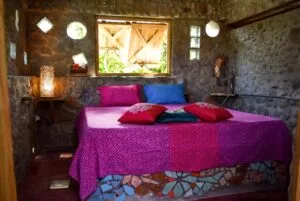 Je verblijft hier in een ruime, kleurrijke kamer met schilderijtjes van lokale kunstenaars en felgekleurde meubels. De inrichting is simpel maar knus. Tegelijkertijd zorgt de open inrichting ervoor dat je je één met de natuur voelt. 's Ochtends geniet je van een vers ontbijt en ook voor een diner met lokaal groenten, kruiden en specerijen, kun je bij de lodge terecht.Wil je wat meer opties? Met een autoritje van tien minuten sta je in het hoofdstadje Roseau.