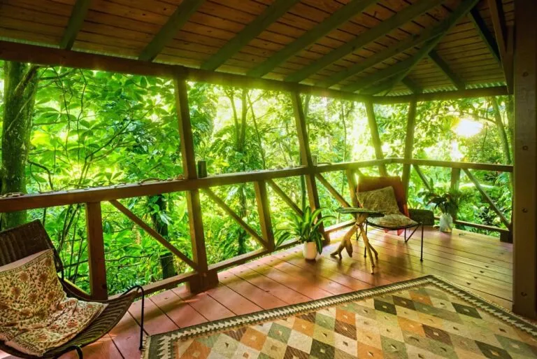 De bungalows zijn afgewerkt met hout en omgeven door een tuin met veel bloemen en tropische planten. Het buitenleven is belangrijk voor Pierre: alle bungalows hebben een buitenlounge en een buiten badkamer. Daarnaast beschikken ze allemaal over een keuken. Bij de lodges heb je echt je eigen plekje. Maar ook voor gezelligheid zit je hier goed: er is er een fijne gemeenschappelijke ruimte en een heerlijk groot zwembad.