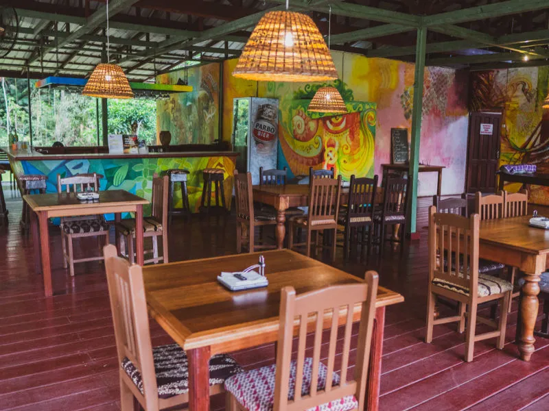 Je vindt hier comfortabele houten lodges met kamers en suites van wisselend formaat, die mooi passen in de natuurlijke omgeving. Het restaurant serveert Surinaamse en internationale gerechten gemaakt van verse, lokale ingrediënten.