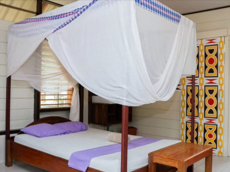 Jungle Lodges, gelegen op een eiland in de binnenlanden, biedt een unieke ontsnapping in de ongerepte natuur van Suriname. De comfortabele lodges zijn gebouwd met natuurlijke materialen en zijn perfect geïntegreerd in de omgeving. Elke lodge beschikt over moderne voorzieningen, waaronder comfortabele bedden, een eigen badkamer, en een veranda met een prachtig uitzicht op de rivier en het regenwoud. Er is een breed scala aan inbegrepen activiteiten zoals wildlife spotten en culturele activiteiten.