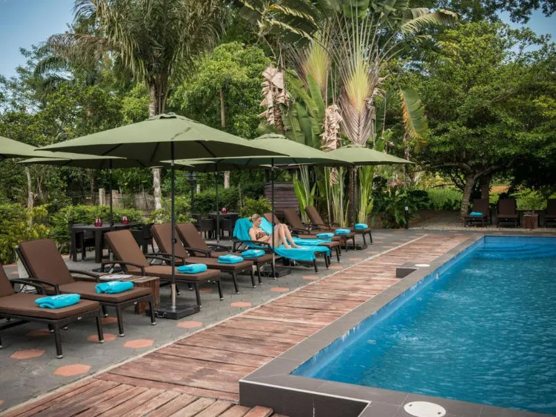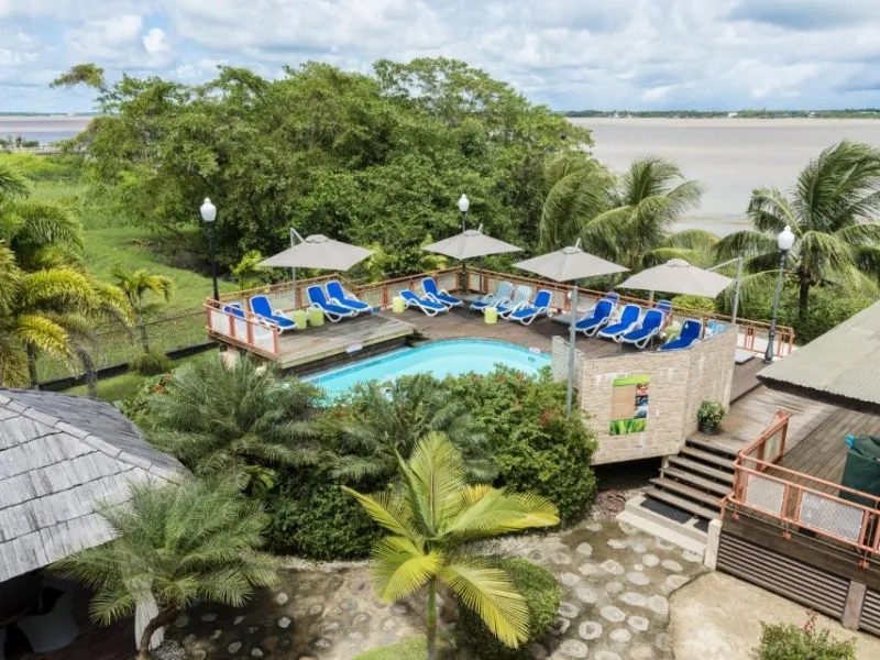 Eco Hotel Paramaribo is een premium eco-resort gelegen aan de oever van de Surinamerivier, in het centrum van Paramaribo. Dit resort combineert duurzaamheid met comfort, en biedt een ontspannen verblijf te midden van mooie tuinen en natuurlijke schoonheid. De kamers zijn modern en stijlvol ingericht, voorzien van airconditioning, comfortabele bedden, en een eigen balkon met uitzicht op de tuin of de rivier. Het restaurant serveert een mix van lokale en internationale gerechten, bereid met verse, lokale ingrediënten.