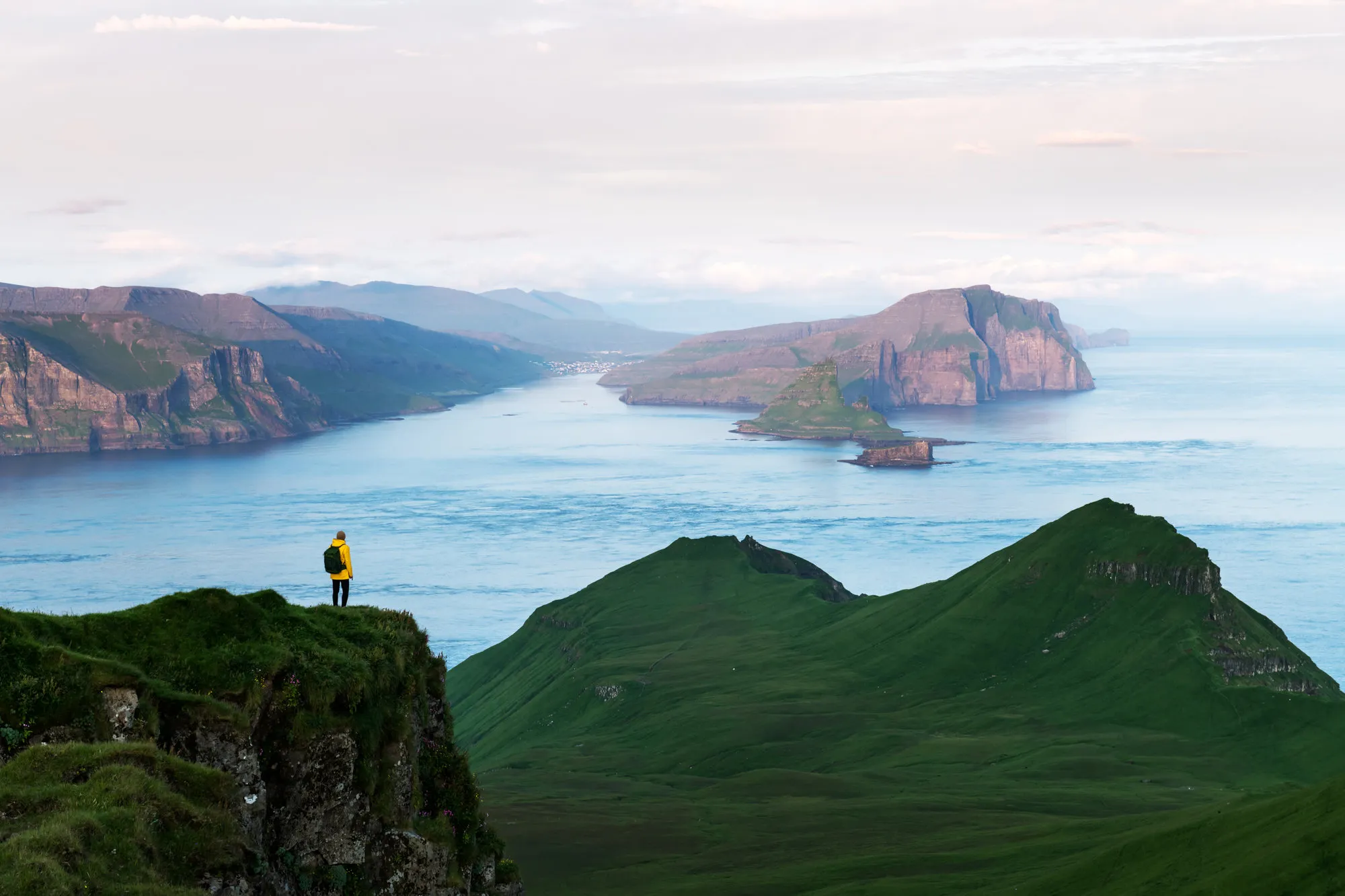 Na een vlucht van zo’n 5,5 uur land je op het eiland Vágar, je eerste kennismaking met de ruige schoonheid van de Faeröer eilanden.