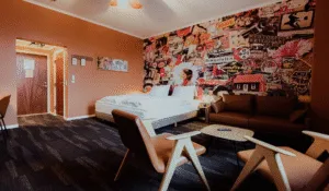 De kamers en suites zijn modern en stijlvol ingericht, met subtiele verwijzingen naar de ruige natuur van de eilanden. ’s Ochtends staat er een uitgebreid ontbijtbuffet klaar met lokale en Scandinavische lekkernijen. Hotel Heima heeft ook een goed aangeschreven restaurant en een gezellige rooftopbar met uitzicht over de daken van Tórshavn en de baai. Vraag het vriendelijke personeel gerust naar tips voor uitstapjes, ze helpen je graag.