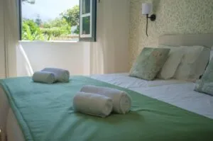 De 11 kamers die de quinta telt zijn allen verschillend, maar ingericht met zorg en oog voor detail. Ze zijn verdeeld over de 2 huizen die op de quinta staan. In de restauratie zijn veel originele elementen bewaard gebleven, en er is gebruik gemaakt van warme tinten die perfect bij het landschap passen. Beide huizen hebben ook een sfeervolle gedeelde woonkamer en keuken, waar je zelf ook maaltijden kunt bereiden. De vriendelijke en goedlachse Hugo en zijn personeel laten je snel welkom voelen. Kortom, we vinden dit een ware parel in de vallei van São Vicente.