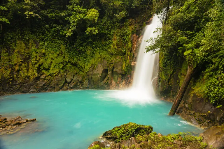 Vandaag duik je de jungle in voor een bezoek aan het Nationale Park Volcán Tenorio. Dit park herbergt een uniek natuurwonder: de felblauwe rivier Rio Celeste, die dwars door het diepgroene regenwoud snijdt. Terwijl je de paden volgt spot je schitterende vogels en luister je naar de verborgen dieren die zich hier schuilhouden.