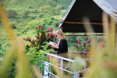 Hoe heerlijk is het om de dag rustig op te starten met een ontbijtje en een boek op de veranda van je ecolodge? Veel meer dan het ruisen van de wind en balkende ezels in de verte hoor je hier niet.