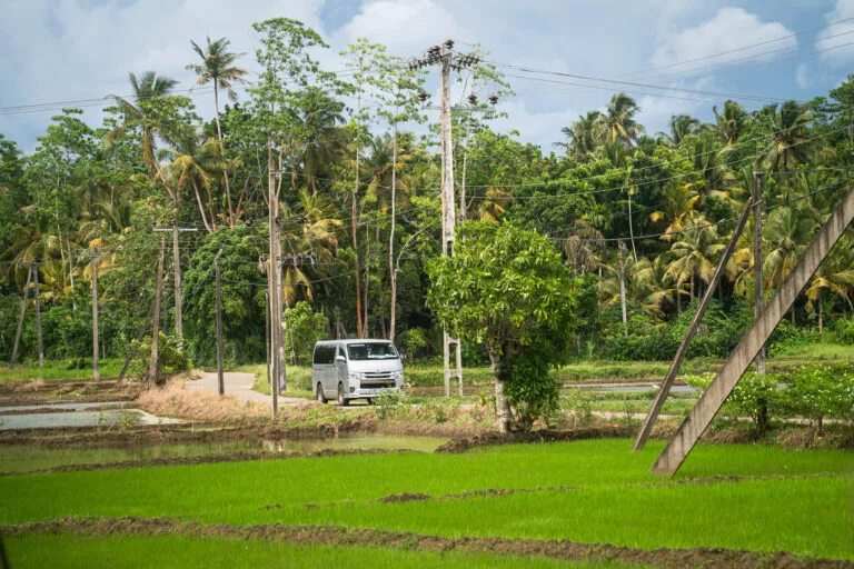 Na de ochtend in Negombo laat je de kust achter je en vervolg je de reis richting het noorden. De rit naar Wilpattu duurt ongeveer vier uur, maar vliegt voorbij dankzij het wisselende landschap. Je rijdt dwars door het echte Sri Lanka: langs felgroene rijstvelden, plantages vol bananenbomen en wuivende palmen. Onderweg vang je een glimp op van het lokale leven in de kleine dorpjes die je passeert.