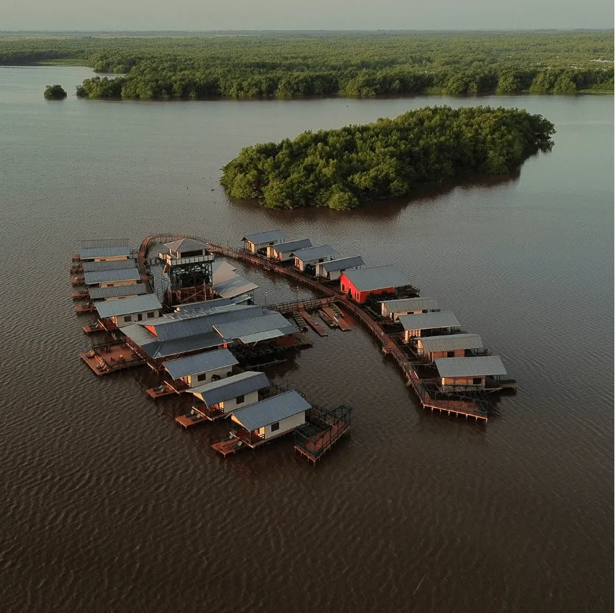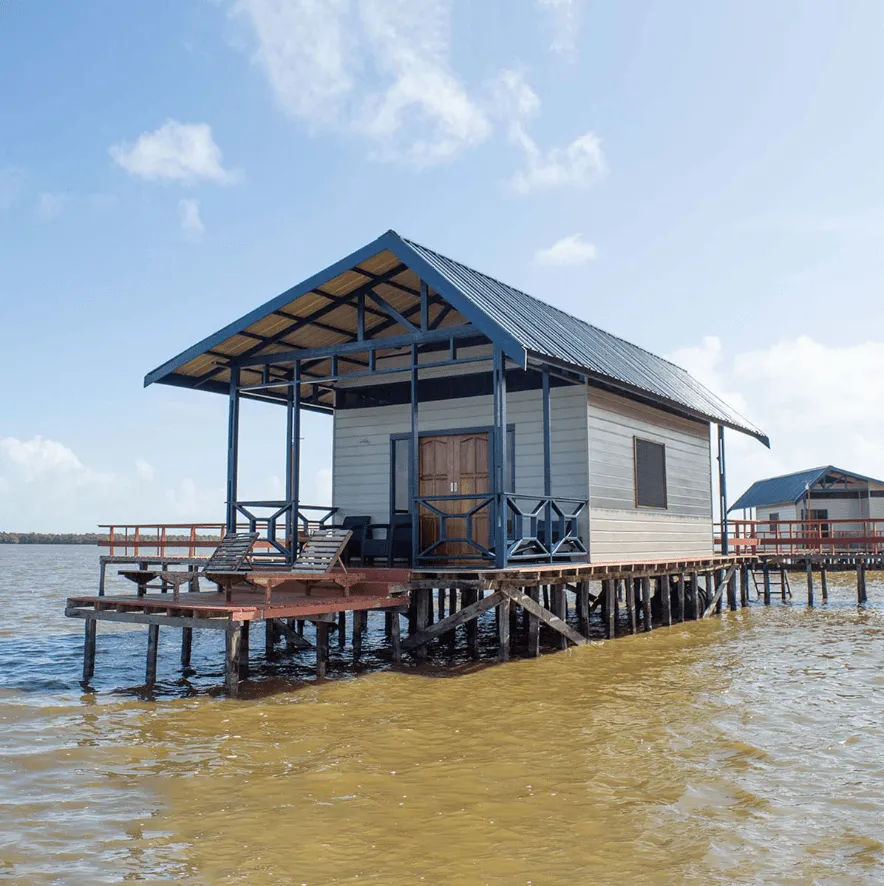Bigi Pan Lodges is gelegen aan de serene oevers van het meer van Bigi Pan, in het westen van Suriname. Het biedt een unieke ervaring met verblijven die direct boven het water zijn gebouwd. De moderne en ruime overwater bungalows zijn voorzien van airconditioning, comfortabele bedden en een privéterras met directe toegang tot het meer. Hier kun je genieten van een adembenemend uitzicht en de rustgevende geluiden van de natuur.