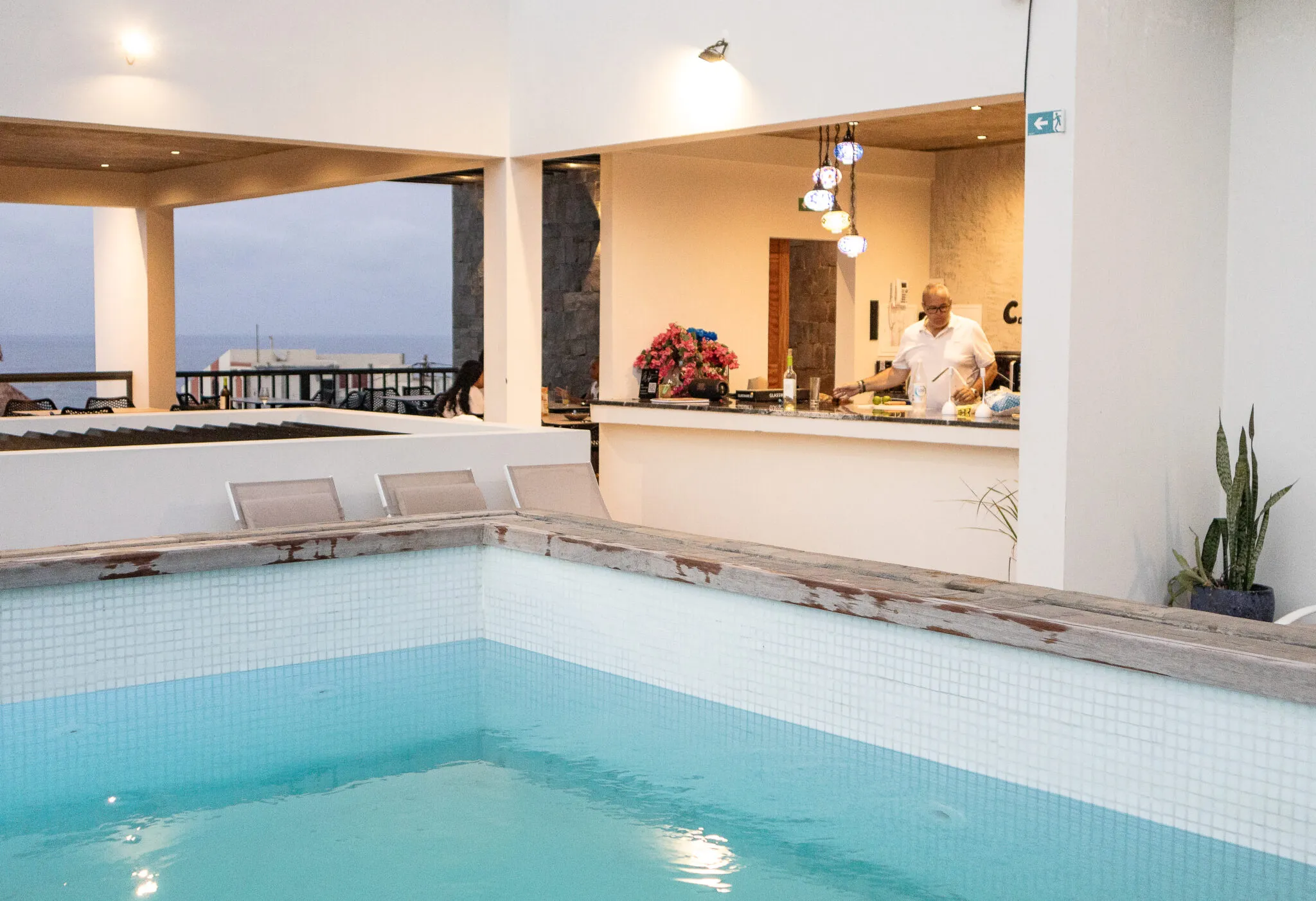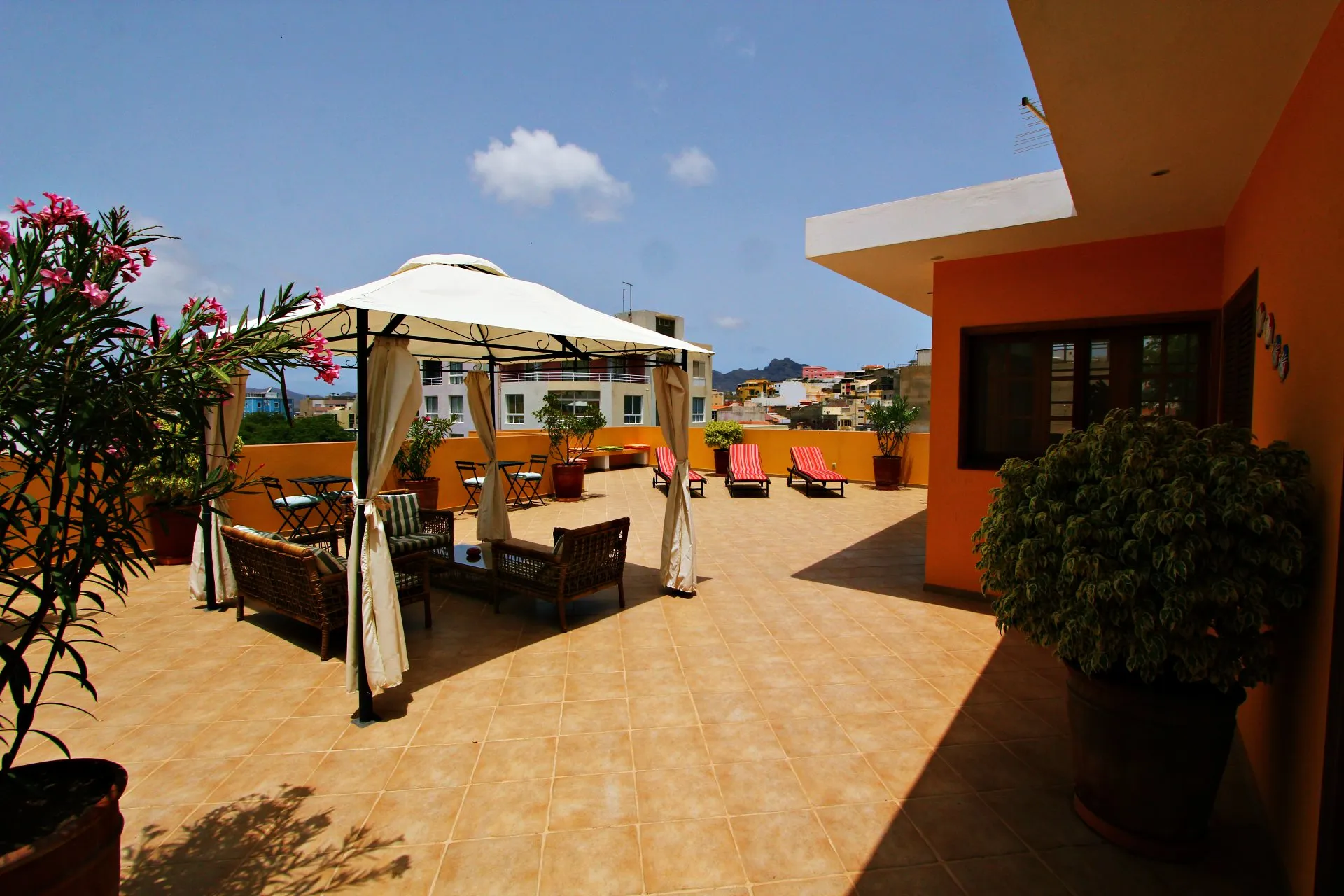 Maar na de reis wil je misschien eerst even ontspannen. Het kleinschalige boutiquehotel waar je verblijft, heeft een fijn dakterras waar je onder het genot van een koud fruitsapje of glas wijn uitkijkt over de daken van Mindelo. Bem vindo!