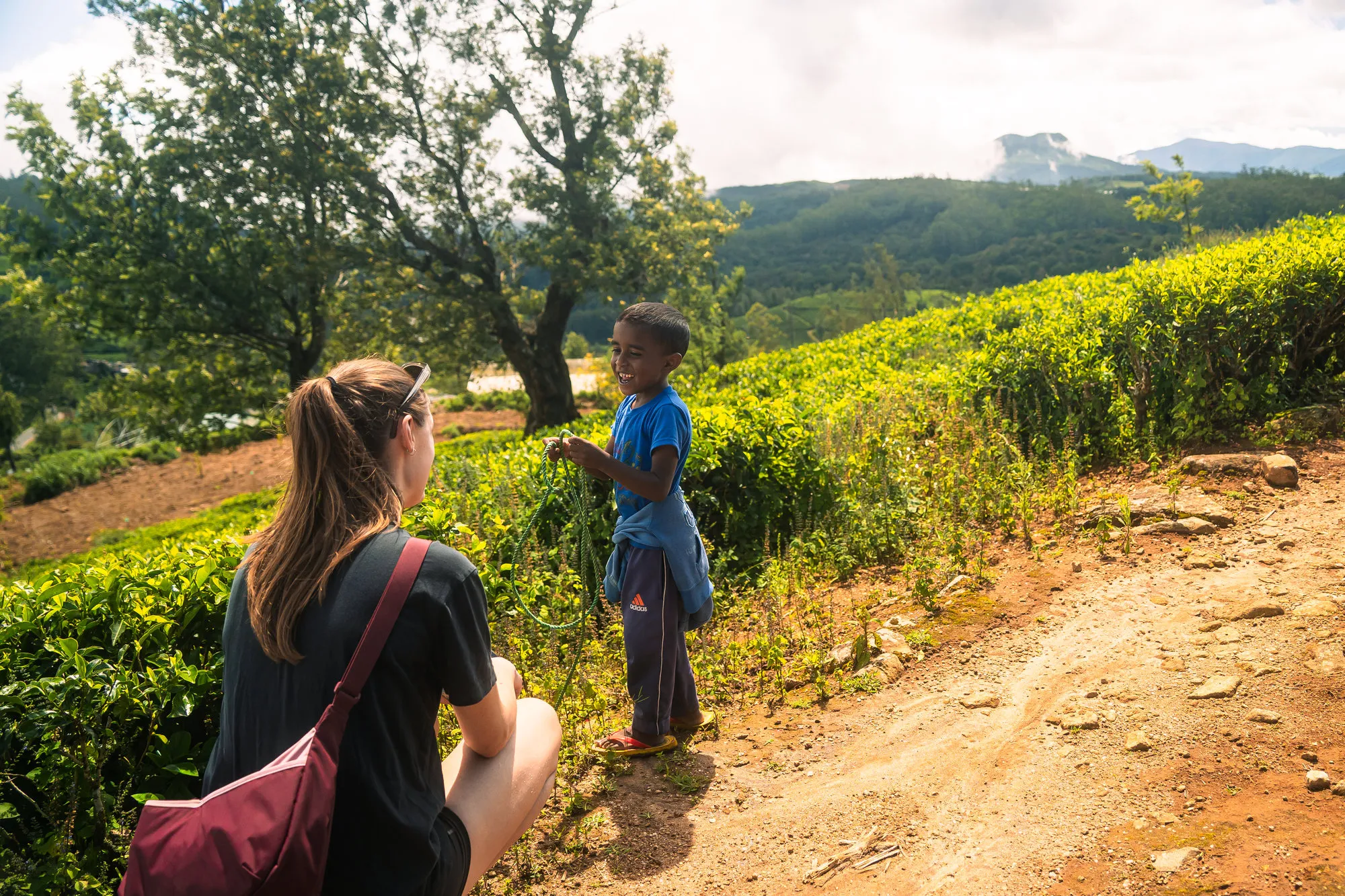 Sta vroeg op en trek je wandelschoenen aan, want vandaag ga je wandelen door de theeplantages. Je loopt een route van ongeveer 10 kilometer, dwars door kleine lokale dorpjes en langs de theeplukkers in het veld. Het is een klein stukje omlopen, maar een bezoek aan de Lovers Leap waterval is absoluut de moeite waard.