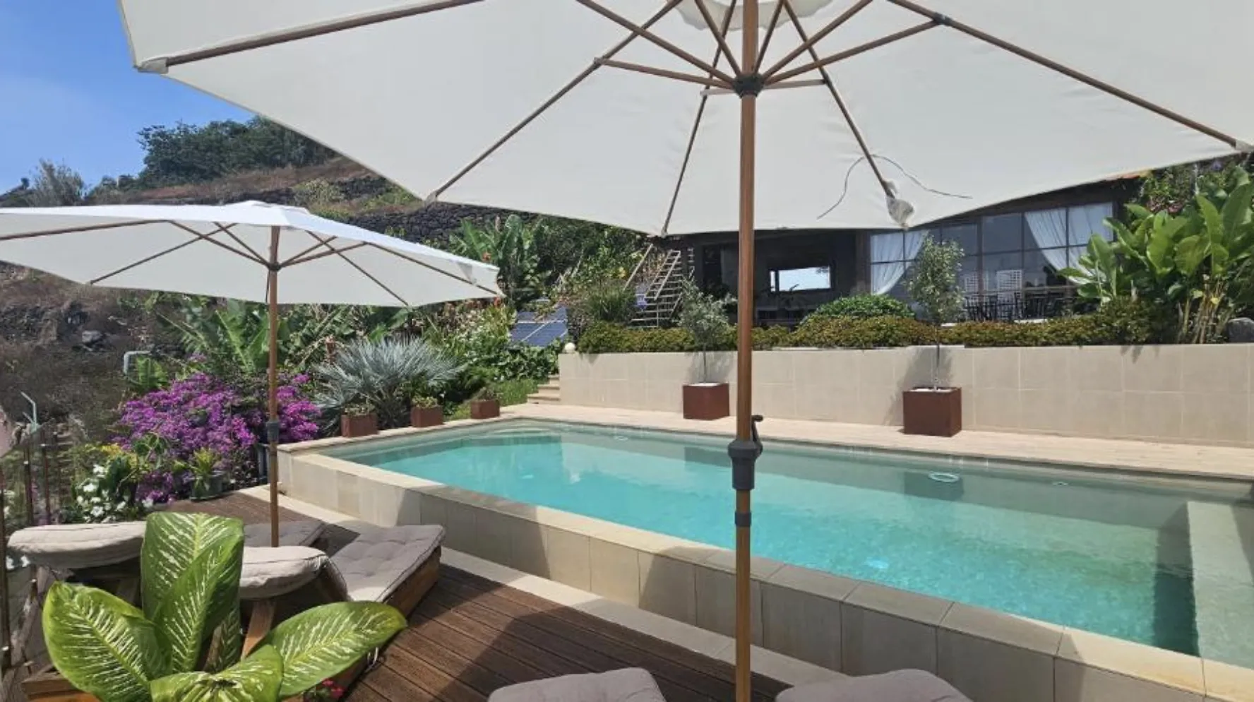 Een aantal jaren geleden verhuisde het Spaans-Franse koppel Jorge & Gabriel naar Madeira om hun droom te verwezenlijken. Ze vonden een prachtig plekje op een oude bananenplantage met fantastisch uitzicht en op een paar minuten van het strand. De fruitbomen zijn nog steeds terug te vinden in de tuinen die de accommodatie omringen, maar ook andere groene planten en bloemen sieren de omgeving. Het kroonjuweel is misschien wel de infinity pool vanwaar je uitkijkt over de groene heuvels en uitgestrekte Atlantische Oceaan.